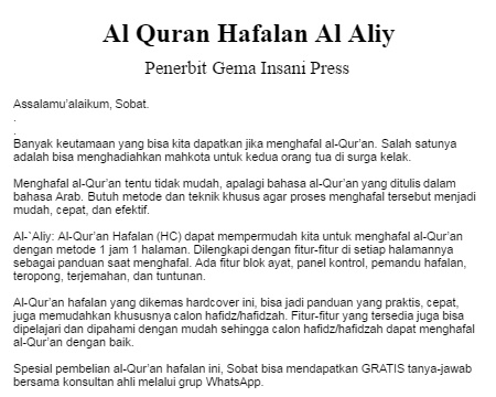 Jual Quran Hafalan Al Hafidz Metode 3 Jam Menghafal Quran
