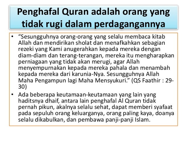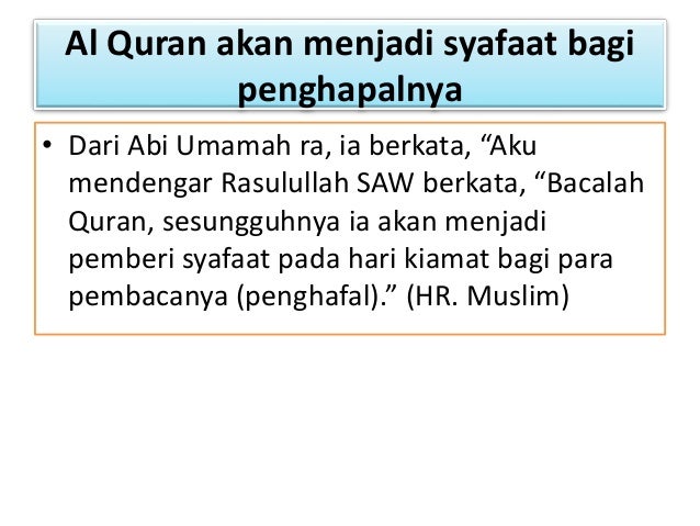 Hadits keutamaan hafidz quran mujurnya orang yang membaca al quran setiap hari. Al quran yakni kalam allah swt yang diwariskan kepada nabi muhammad shallallahu alaihi wasallam. Agama spiritual sosiologis dan jasmani.