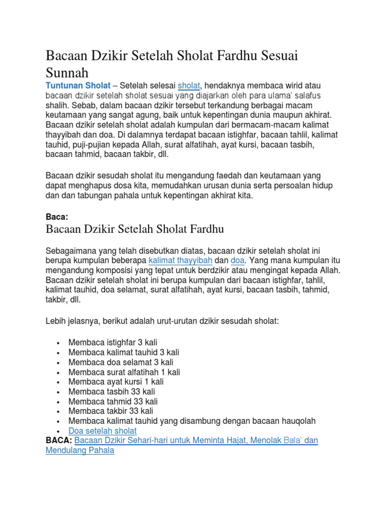 Bacaan Dzikir Setelah Sholat Fardhu Sesuai Sunnah
