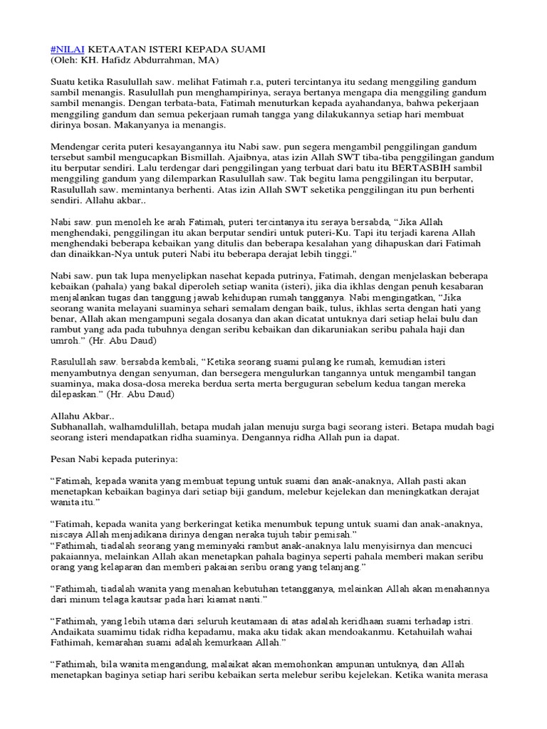 Pahala Istri Yg Taat Pada Suami Akan Disedekahkan Kepada Org Tuanya