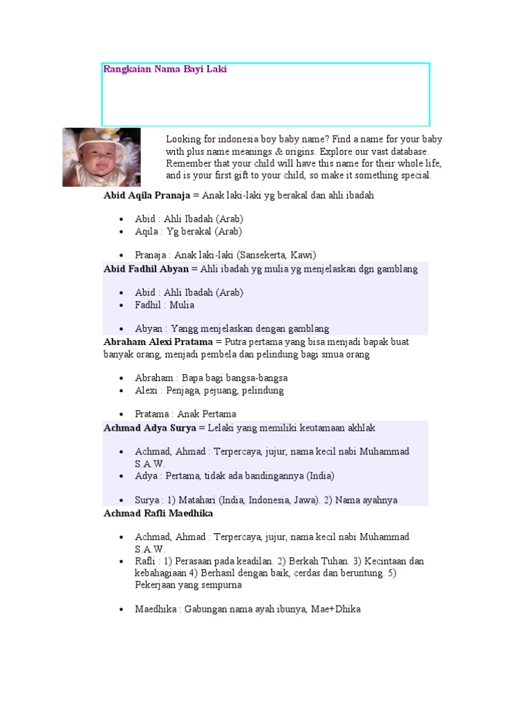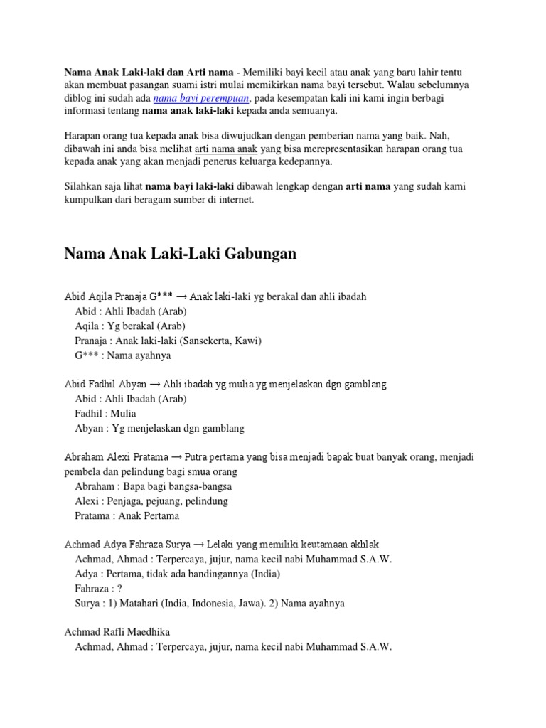 Pdf Kumpulan Nama Nama Bayi Nama Nama Bayi Laki Laki Imdadur