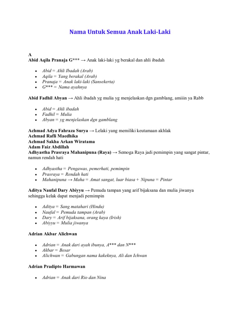Doc Daftar Lengkap Nama Islam Untuk Anak Laki Laki Mia Adzar