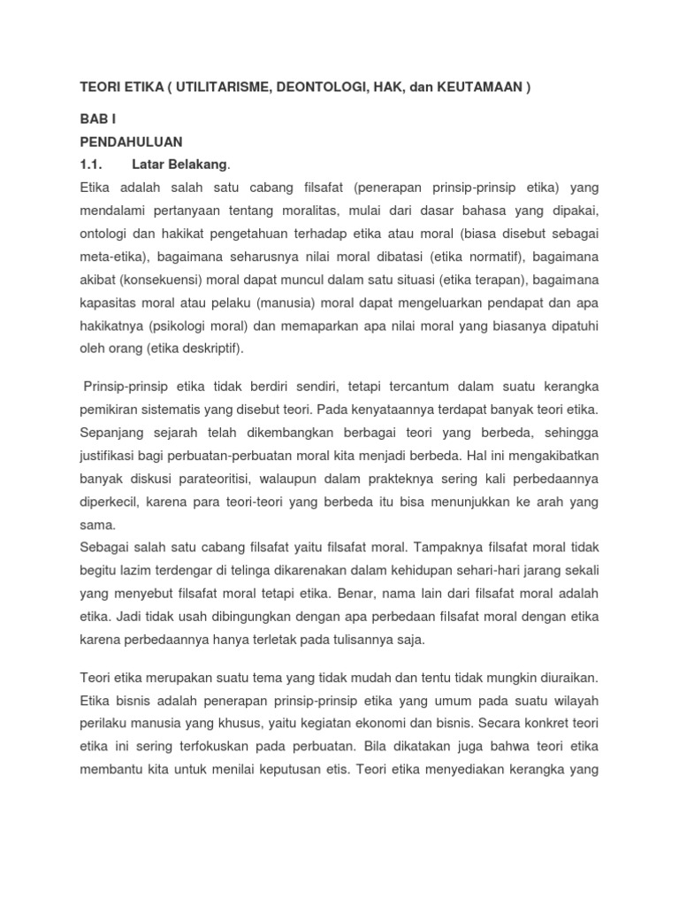 Doc Teori Etika Dan Prinsip Etis Dalam Bisnis Rahmat Heryandi